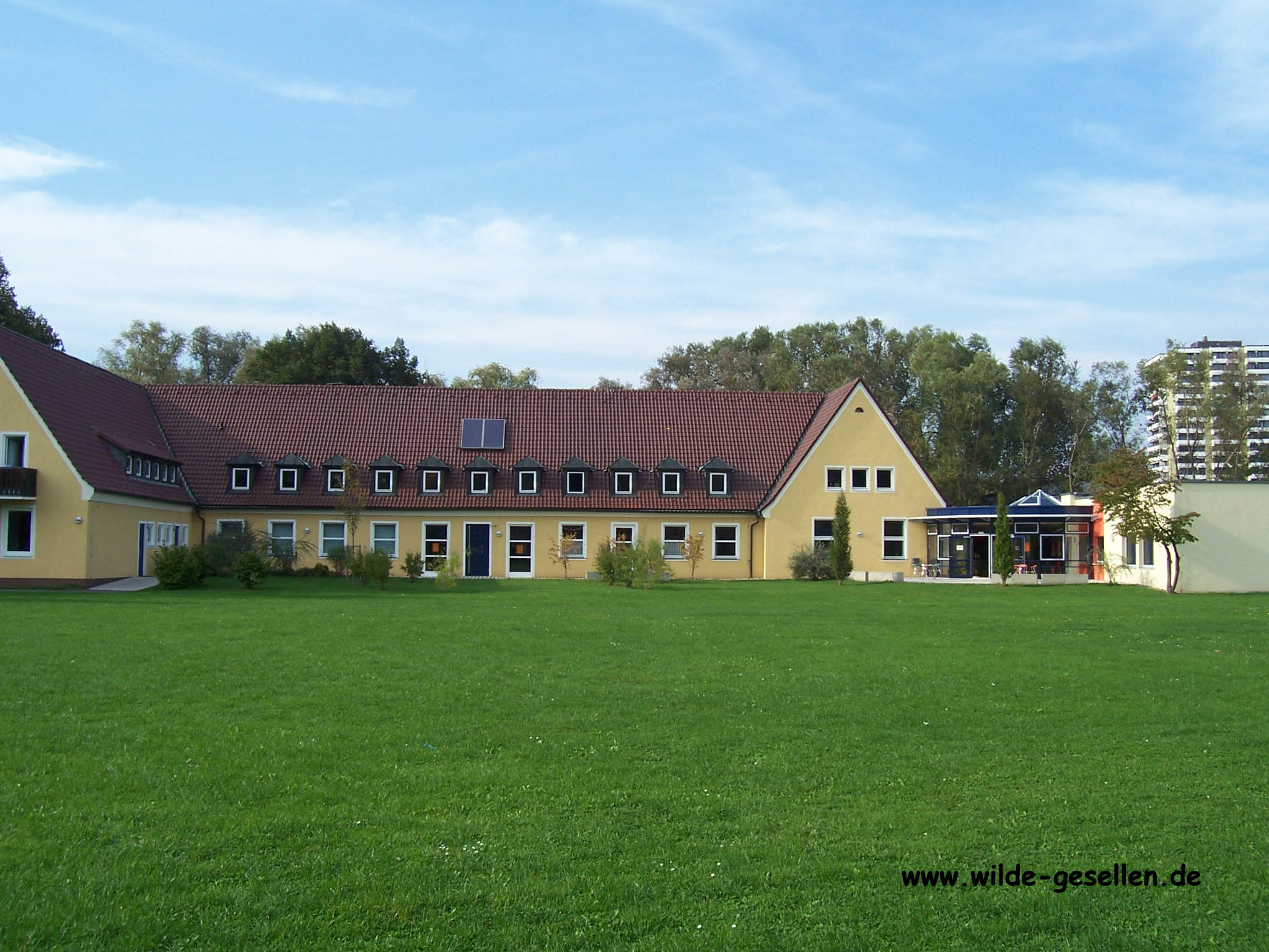 großen Wiese, über einen Aktiv Spielplatz, Kicker,