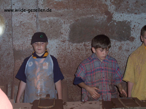 Gelber Tag - Unsere Steppenwölfe beim Tonziegel herstellen.
