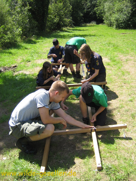 Sommerlager - Aufbau des Standlagers.... hier wird das Kreuz der Märchenjurte geknüpft.