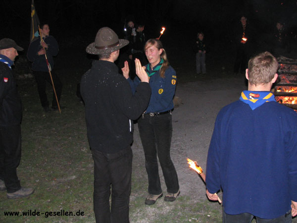 Osterlager - Trotz Biberhalstuch legte Sophia ihr Pfadfinderversprechen ab. Das gehört schließlich dazu wenn man ein guter Keo werden will.