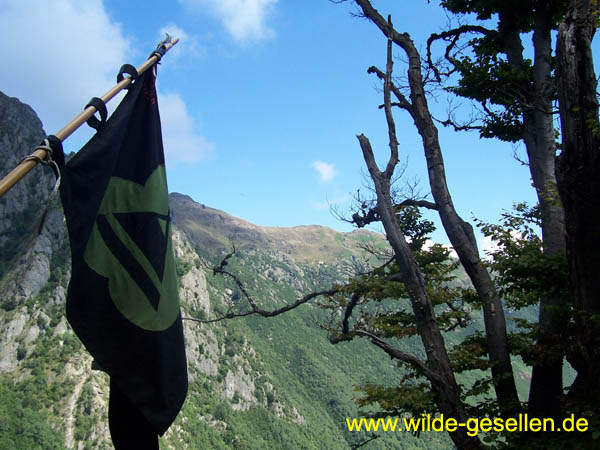 Sommerfahrt - Blick durch die Bäume auf die Schweizer Alpen