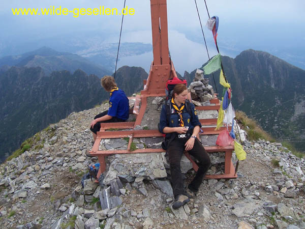 Sommerfahrt - Pause am Gipfelkreuz des Gridone