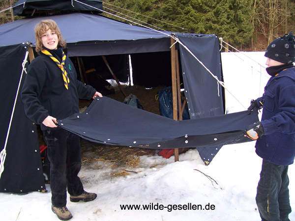 Schneezelten - jetzt wird eingepackt bevor's nach Hause geht.