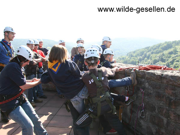 Pfingstlager - Kurzer Test ob das Seil auch hält ;-)