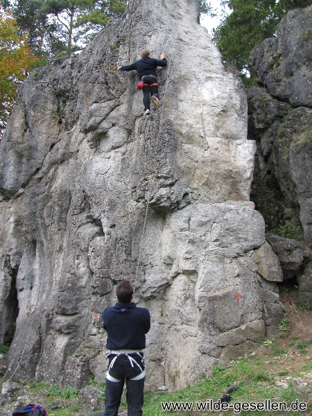 Rovermoot - Klettern ist Teamwork, während einer Klettert, muss der andere sichern.