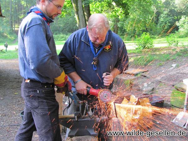 Schmiedetag - Zuschneiden der alten Autofedern.