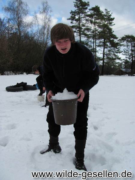 Winterlager - Hier entstehen Bausteine für die Schneeburg.