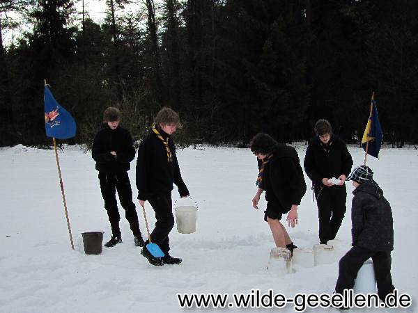 Winterlager - Aller Anfang ist schwer, aber die Burg wird schon noch wachsen.