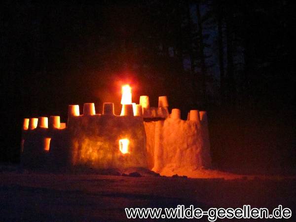 Winterlager - Unsere Burg hell erleuchtet, bevor wir die Besetzer unter Schneeballfeuer nahmen.