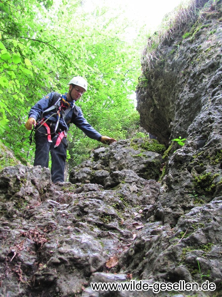 Pfingstlager - Klinsi beim Abstieg hinter dem Sprungstein.