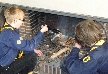 Jungs mit einem Essen. Aber auch am Grill gab es lecker zu Essen, so