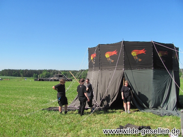 Gesellen rund um das Jurtenburgteam bauten die Jurtenburg für