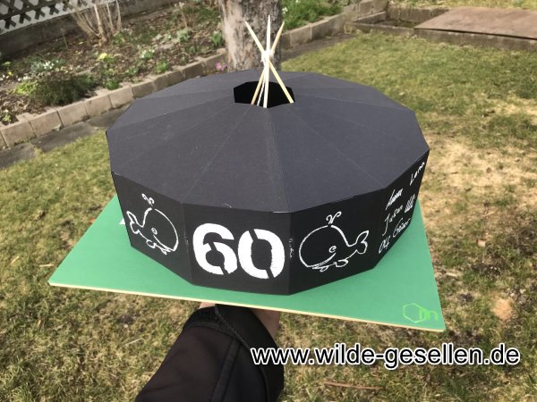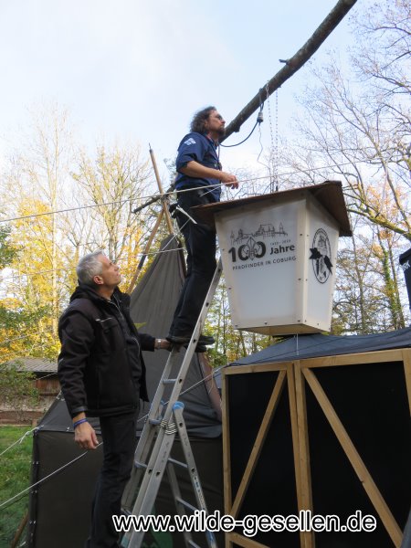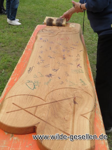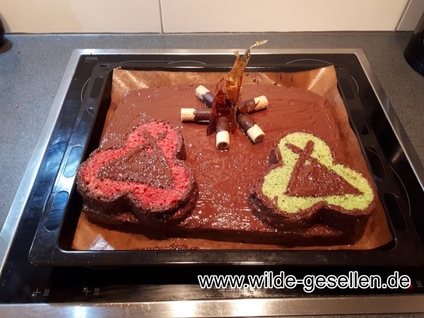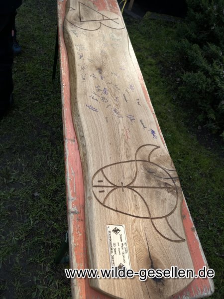 Vorbereitung für 77 Jahr Feier am besten werden wir, wenn uns die Zeit davon rennt. So auch dieses Mal. Kurz vor der Feierlichkeit kam uns noch eine Idee fr ein Gästebuch in den Sinn. Es sollte ein schweres Brett werden, auf dem alle unterschreiben dürfen um daraus später eine Sitzbank zu machen. Auch ein Geburtstagskuchen wäre doch ganz nett. Dann aber mit Pfadfinder motiv.