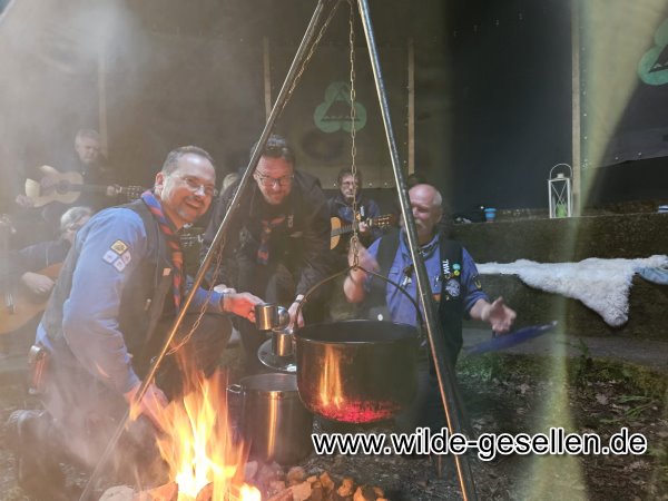 77 Jahre Wilde Gesellen -  Stammesjubiläum am 30.04.23 auf dem Stiefvater. Nachdem das 75-jährige auch Corona zur Opfer gefallen war, hatten unsere Stammesväter recht, wir sollten eine Feier nachholen. Einen Termin zu finden, war aber gar nicht so leicht und so ging es kurzerhand ohne viel Schnick Schnack in die Jurte auf dem Stiefvater. Der ein oder andere Ehemalige konnte auch begrüßt werden und so hatten wir einen schönen Abend am Lagerfeur, an welchem wir auch einschliefen. Vielen Dank an alle die da waren.