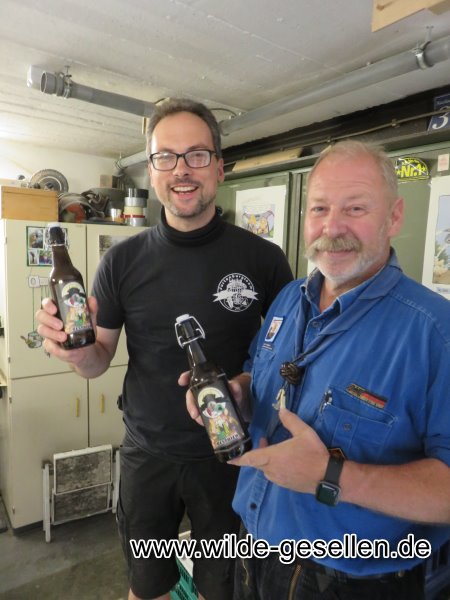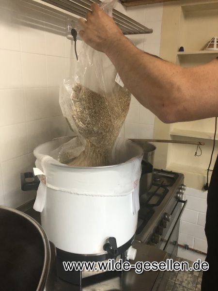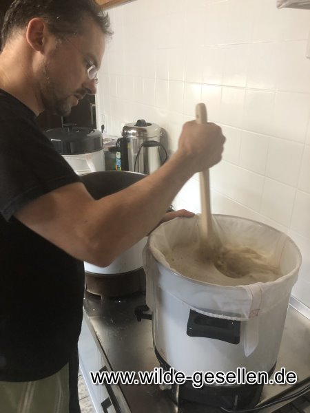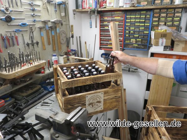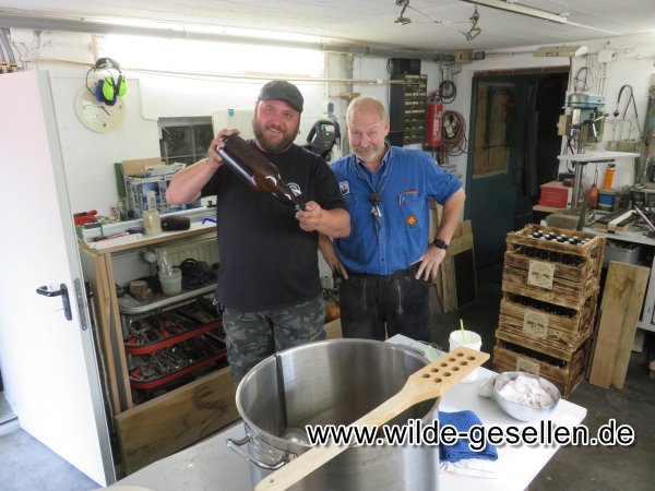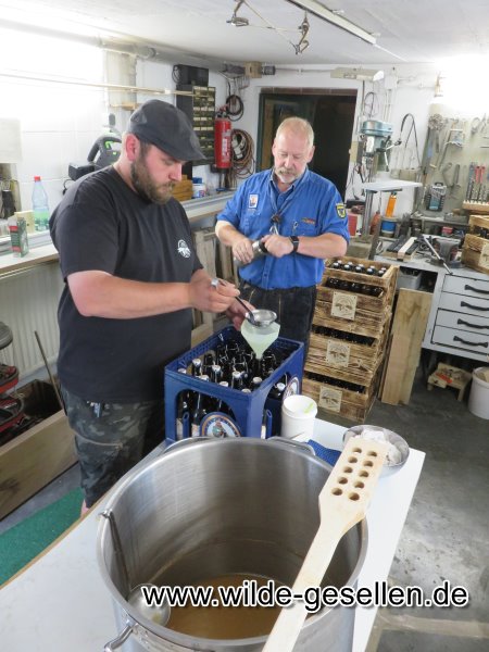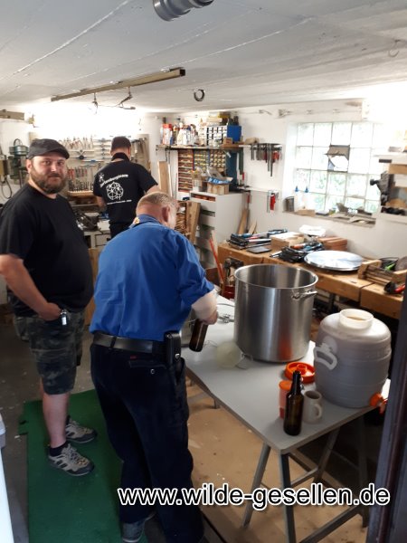 Bier Brauen in ganz handwerklichen Ausführung. Nachdem Wal die "Jahre der runden Geburtstage" eingeläutet hat, haben wir uns für Robert und Klinsi was besonderes überlegt.  Da die beiden Fans eines guten Bier sind, wollten wir den beiden einmal Fünfzig und einmal vierzig Falschen zu Ihrem Runden Geburtstag brauen. Nachdem wir das noch nie vorher gemacht hatten, war am Anfang die Rechchere angesagt. Dann ging es ans Kochen. Die Gärung stellte unsere Geduld auf die Probe, bis wir es am Ende abfüllen konnten. Doch wenigstens beim Kästenbau gab es keine Fragen. Am Ende wurden die Flaschen dann sogar eigens für die beiden etikettiert.