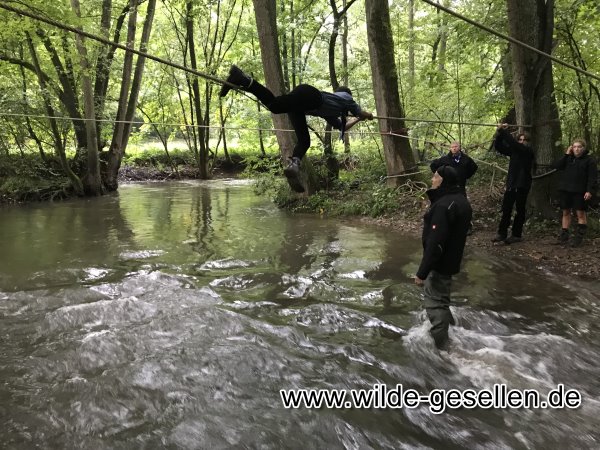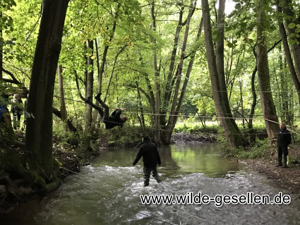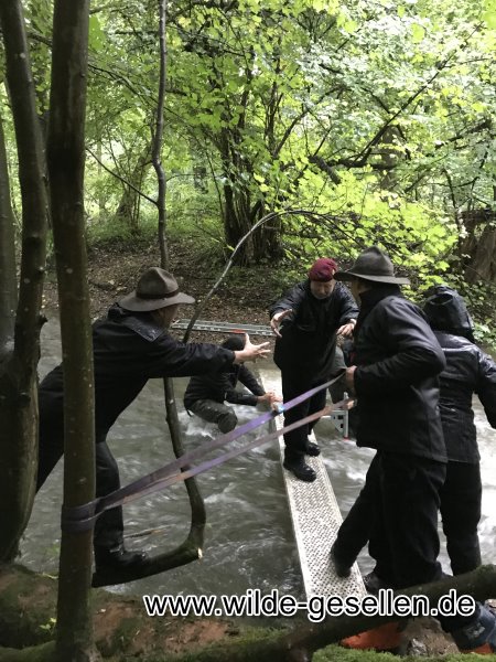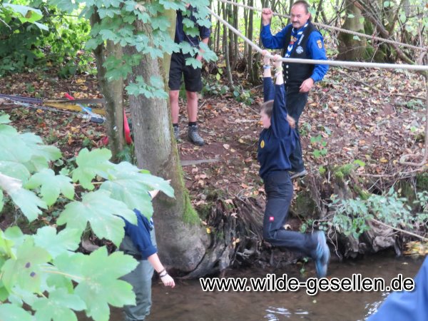 Lauterburglauf 2022 durch das Coburger Land. Während unsere Damen den Naturkunde Posten in der Rosenau stellten, waren die Herren des Stammes zwischen Unter- und Oberwohlsbach an der Seilbrücke zu Gange. Das Wetter meinte es dieses Jahr nicht gut mit uns und so mussten wir die meiste Zeit mit Regen kämpfen. Neben der Seilbrücke bauten wir auch noch einen Behelfssteg auf, was gar nicht so leicht war. Ein weiteres großes Manko dieses Jahr waren die Gruppen selbst, welche sich ungeheuer Zeit liesen und das Ganze Unterfangen unnötig in die Länge zogen.