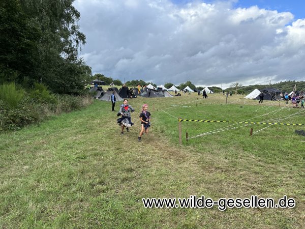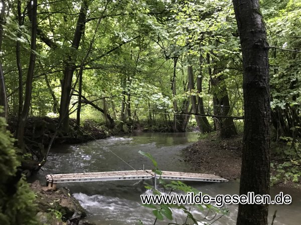 Lauterburglauf 2023 -  durch das Coburger Land. Während unsere Damen recht schnell wieder ihren Naturkundeposten in der Rosenau inne hatten, war die Seilbrücke etwas in der Luft gehangen. Am Ende sind wir auf grund der kürze der Zeit an eine altbekannte Stelle am Radweg nach Mittelberg ausgewichen. Zwar ist der hier vorbeikommende Publikumsverkehr nicht so ideal. Doch stand der Behelfsteg vom letzten Jahr nicht zur Verfügung und die Planungen für einen eigenen waren noch nicht so weit fortgeschritten. Davon abgesehen hat der Lauf super geklappt. Die Sippen waren diesmal deutlih pünktlicher und das neue Konzept, den Lauf mehr einem Haijk anzugleichen hat uns sehr gut gefallen.