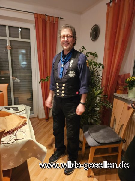 Happy Birthday unserem ehemaligen Stammesführer Büffel. Zu seinem 55ten bekam er endlich die heißbegehrte Weste des  Jurtenburgteam . Vielen Dank für den schönen Abend bei Dir.